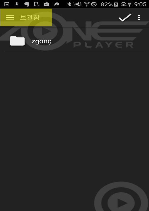 2. 실행된 존플레이어 어플 좌측의 목록아이콘을 클릭합니다.