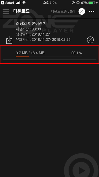 6. 다운로드된 동영상과 수강기간을 확인할 수 있습니다.