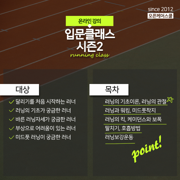 러닝의 기초이론부터 실전보강운동까지 배울 수 있고