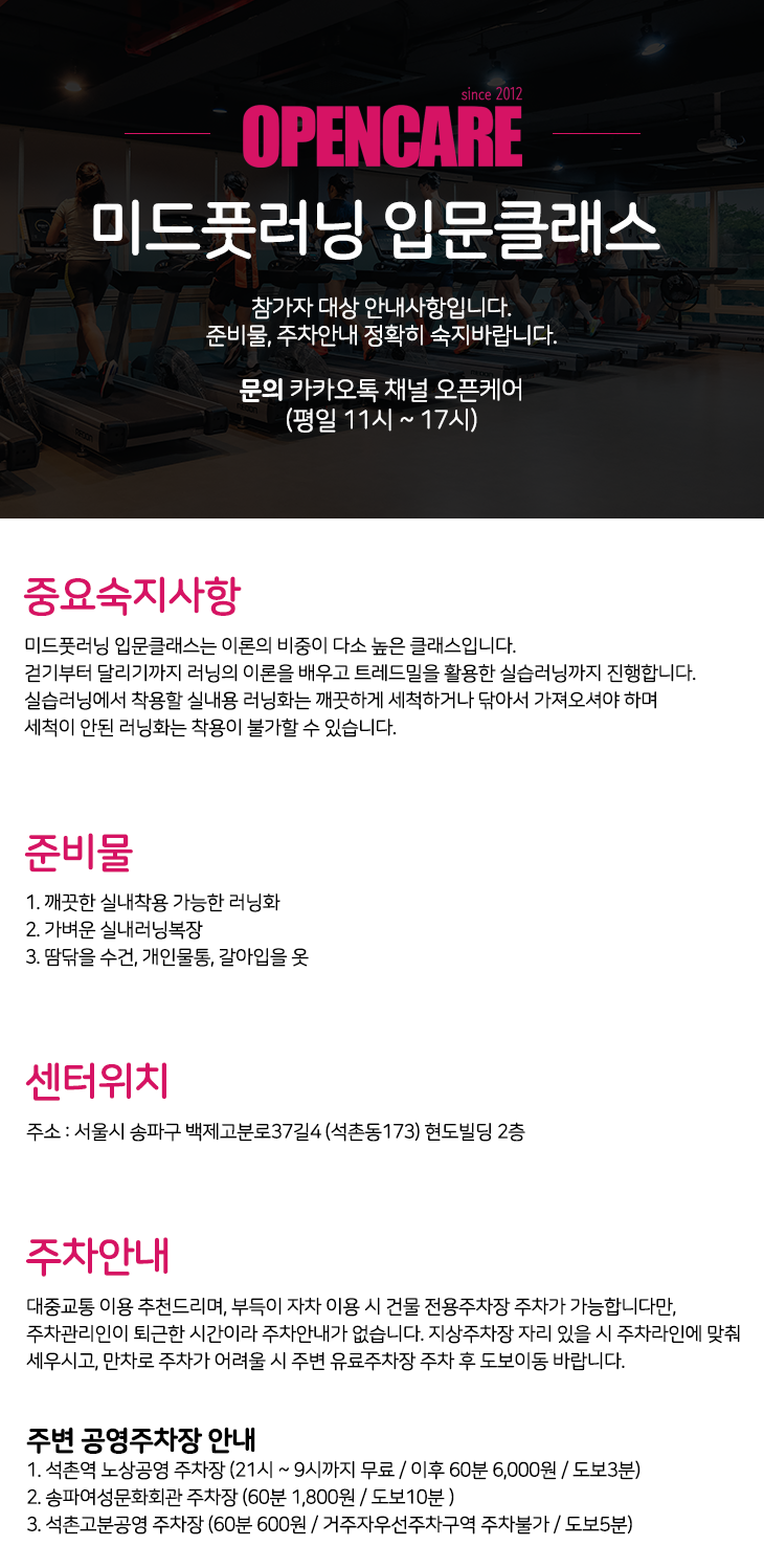 [안내] 러닝 입문클래스 참가자, 클래스 '준비물,주차방법' 안내사항